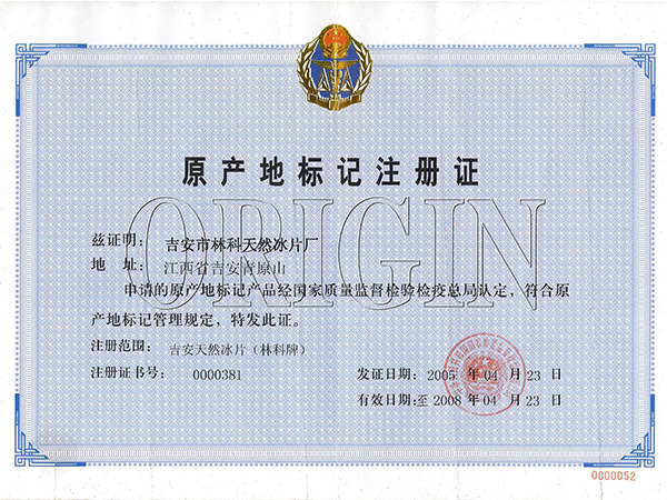 原產地標記注冊證