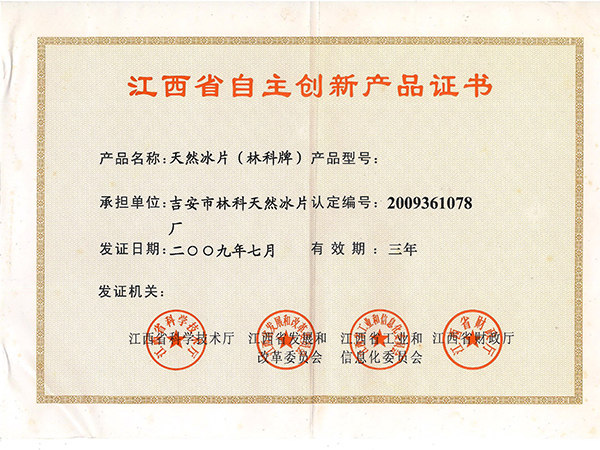 江西省自主創新產品目證書
