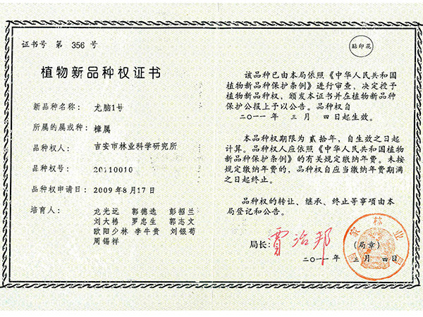 植物新品種權證書